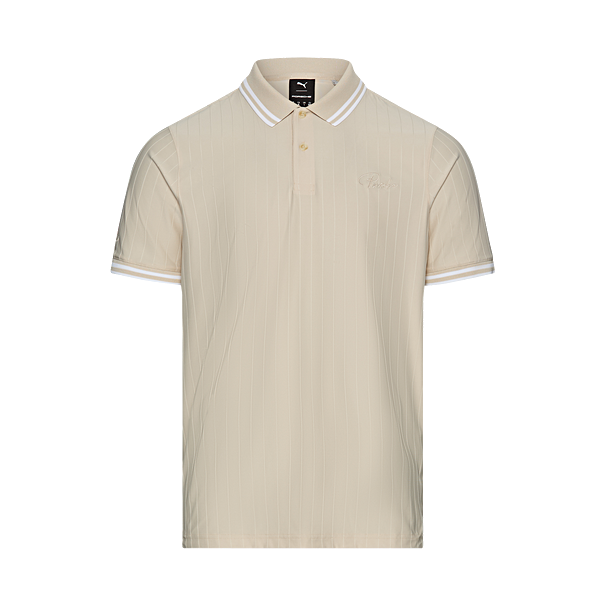Elegante dentro e fora das pistas: a coleção 911 Targa 60Y combina charme retrô com design atemporal em homenagem ao 60º aniversário do carro esportivo. A camisa polo apresenta um padrão pepita tom sobre tom, confeccionada em tecido jacquard elástico de alta qualidade. O tecido elástico, que permite máxima liberdade de movimento, torna a polo a companheira perfeita para um desempenho ideal no campo de golfe.
