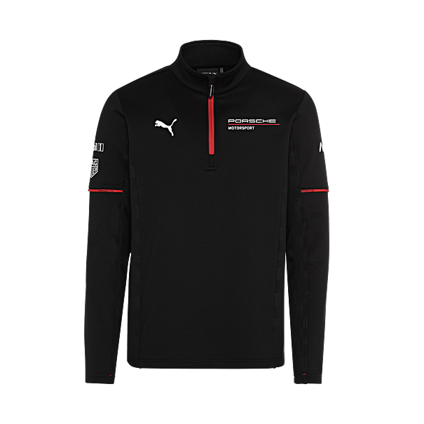 Com um ajuste confortável e tecido fleece elástico macio, esta camada intermediária unissex é excepcionalmente confortável. O padrão Pasha tonal nas laterais e antebraços realça o visual esportivo. A gola com zíper e o debrum vermelho contrastante nas mangas adicionam detalhes visuais. O caráter automobilístico é complementado pelas estampas do logotipo e dos patrocinadores e pela etiqueta Raceborn nas costas.